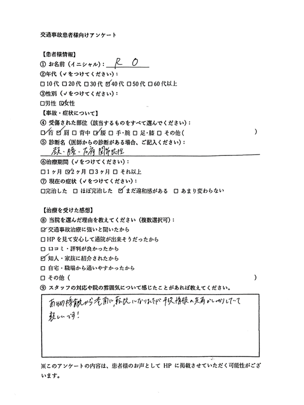 腰痛・腰部捻挫に関する患者様の声